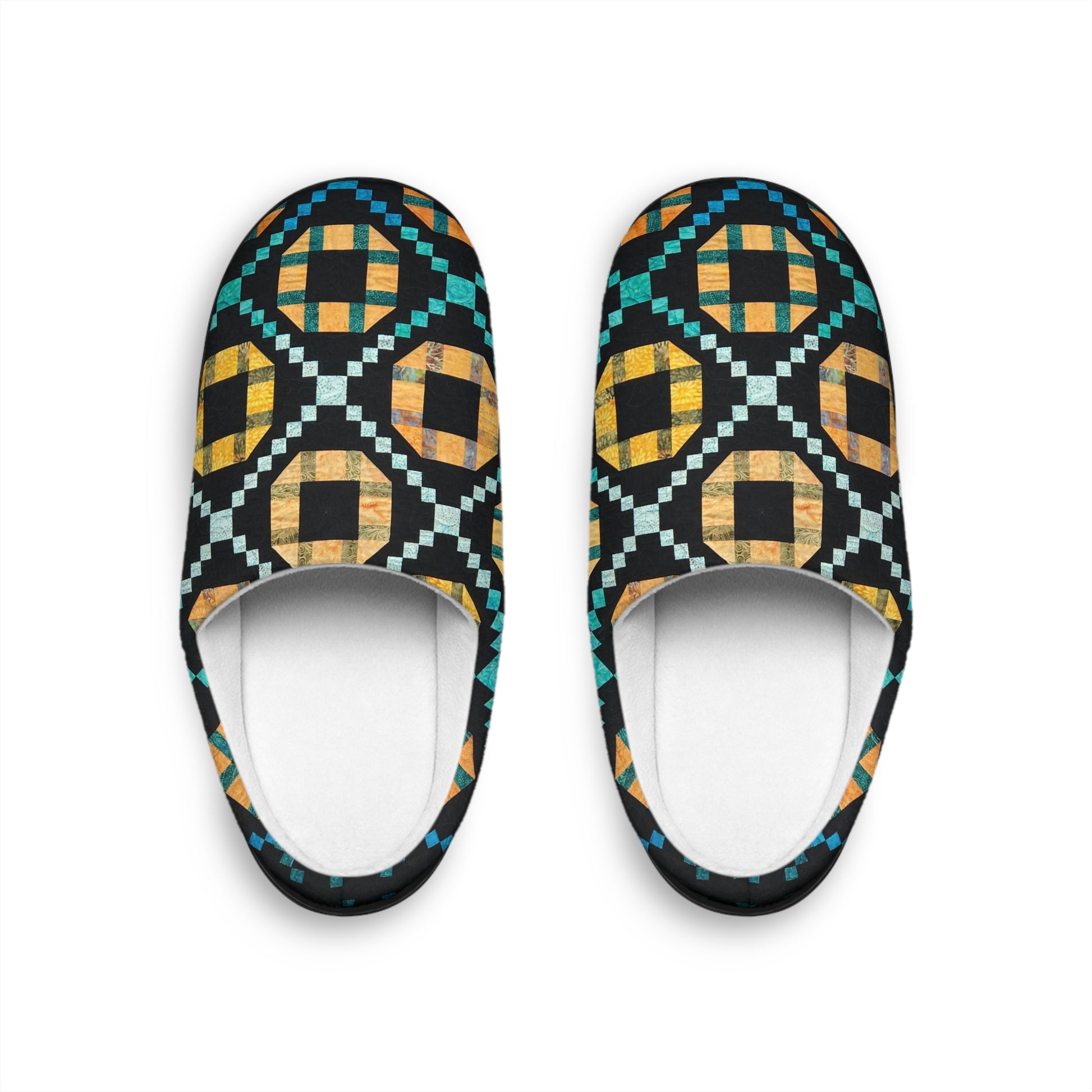 Cozy meets creative in these art-inspired indoor slippers. The flannel fleece lining wraps your feet in soft warmth, while the lightweight, anti-slip sole keeps every step steady and quiet. Geraldine Wilkins’ bold geometric quilt artwork adds a touch of maker magic — transforming everyday comfort into a small act of self-care.